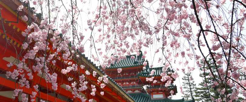平安神宮是京都的聖地集合中的相對較新的部分,但仍然是一座令人印象深刻的神社,其特色是色彩鮮豔的典雅建築,周圍是四個主要方向的大花園。這座建築建於1895年,以紀念平安京(1100年京都)誕辰1100週年。